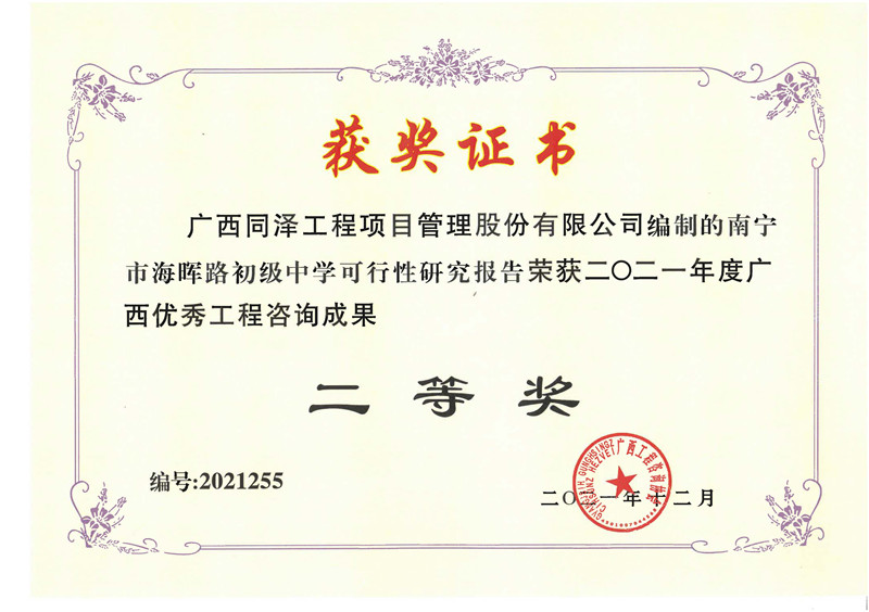 南宁市海晖路初级中学可行性研究报告荣获2021年度广西优秀工程咨询成果二等奖