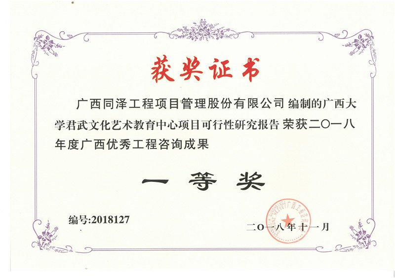 广西大学君武文化艺术教育中心项目可行性研究报告荣获2018年度广西优秀工程咨询成果一等奖