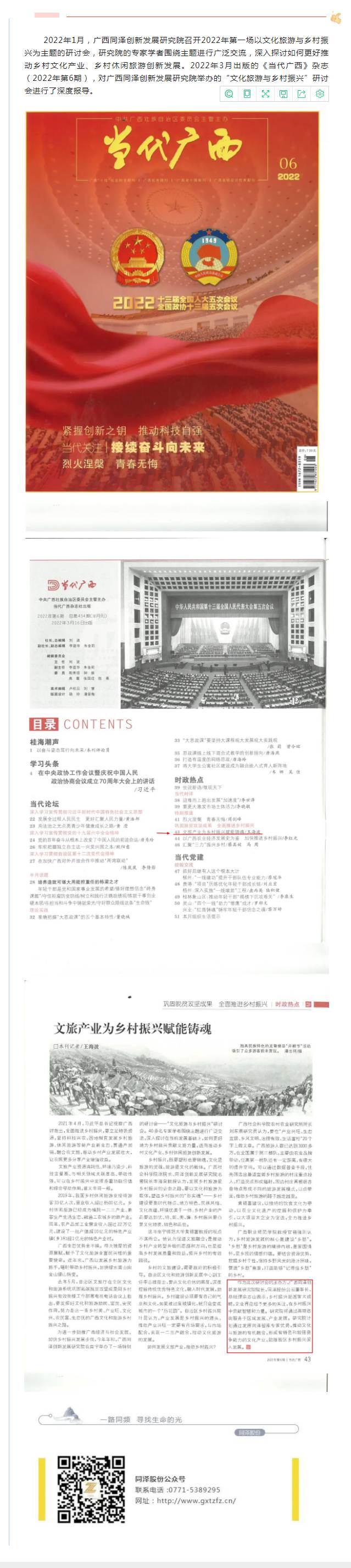 伟德bv1946官网研究院“文化旅游与乡村振兴”研讨会获《当代广西》杂志报导