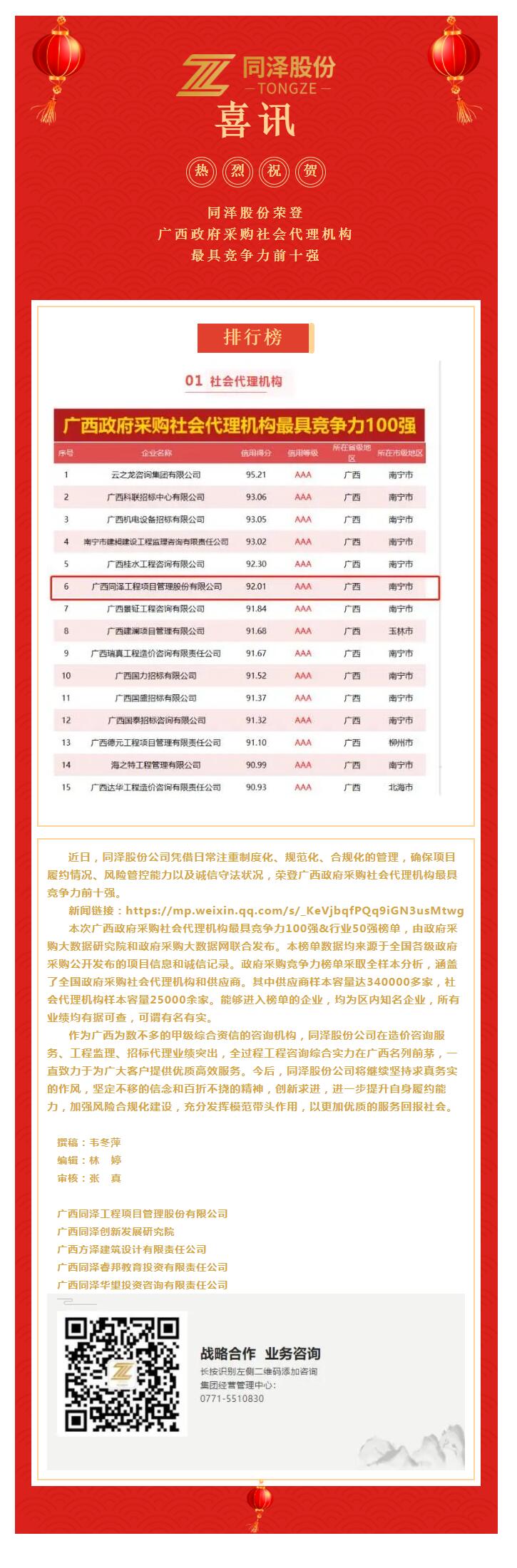 喜讯|伟德bv1946官网荣登广西政府采购社会代理机构最具竞争力前十强