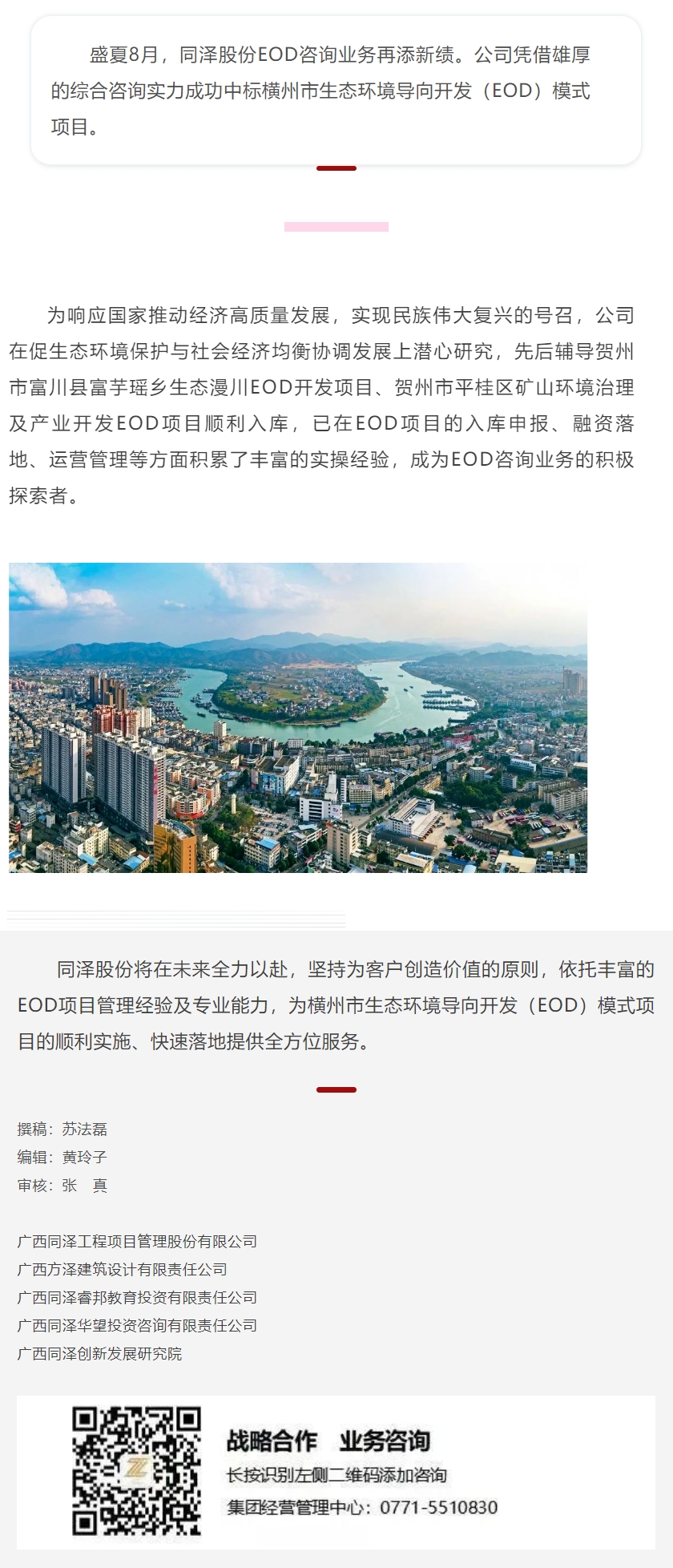 中标资讯 | 伟德bv1946官网成功中标横州市生态环境导向开发(EOD)模式项目