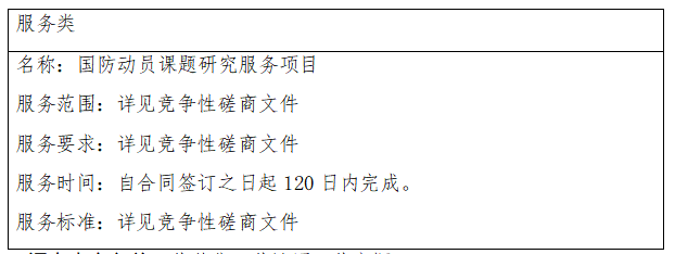 二、项目名称:国防动员课题研究服务项目